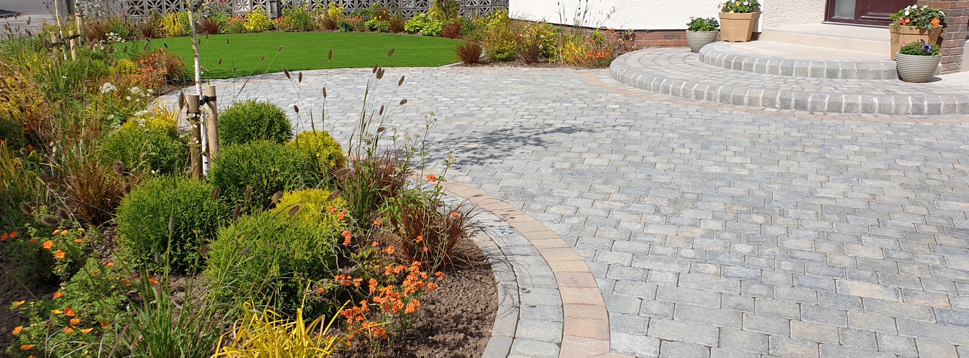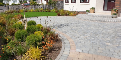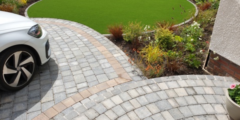 When it comes to your driveway planning, a great place to start is inspiration from your property type. For this design, the homeowners chose a blend of colours from our Drivesett® Tegula range to create a traditional driveway that works beautifully with the home. The paving wraps around the plants, adding some colour to the drive, finished off with matching kerbs and steps leading up to the home. Thanks to the type of planting, this driveway is easy to maintain and gives a great first impression.