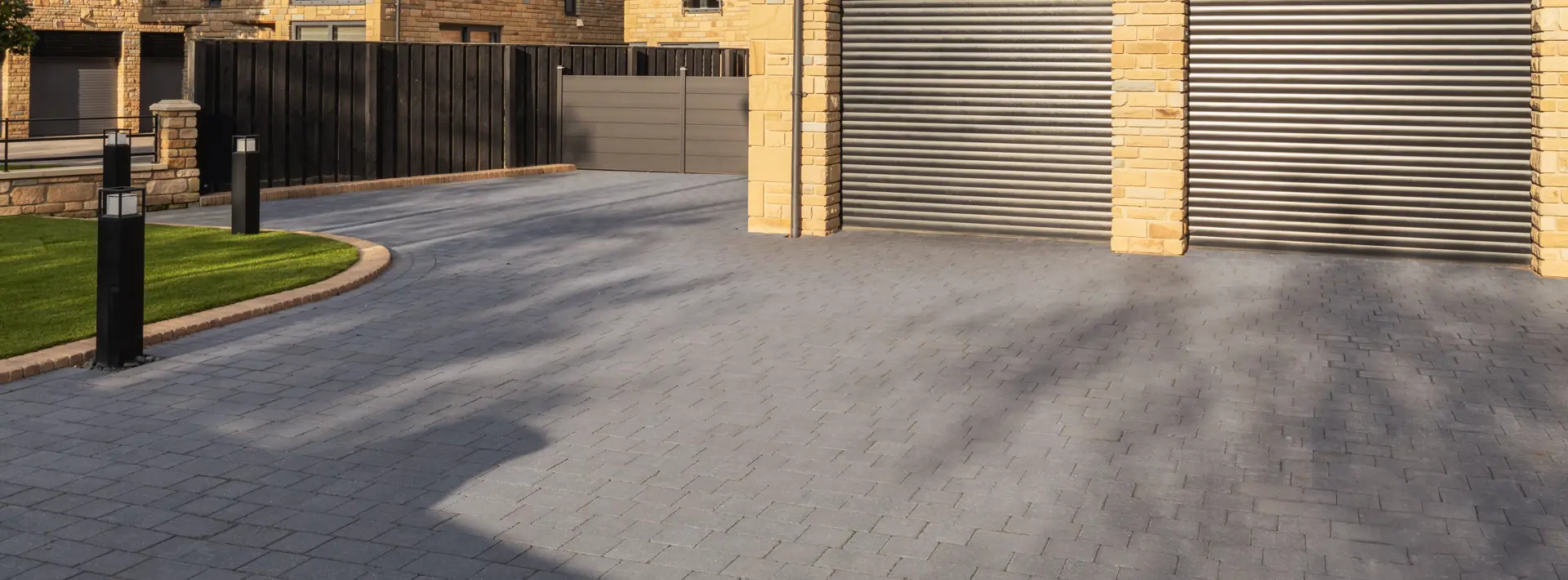 This project creates a welcoming entrance, combining classic charm with modern styling using our DrivesettĀ® Tegula Original block paving in Charcoal.