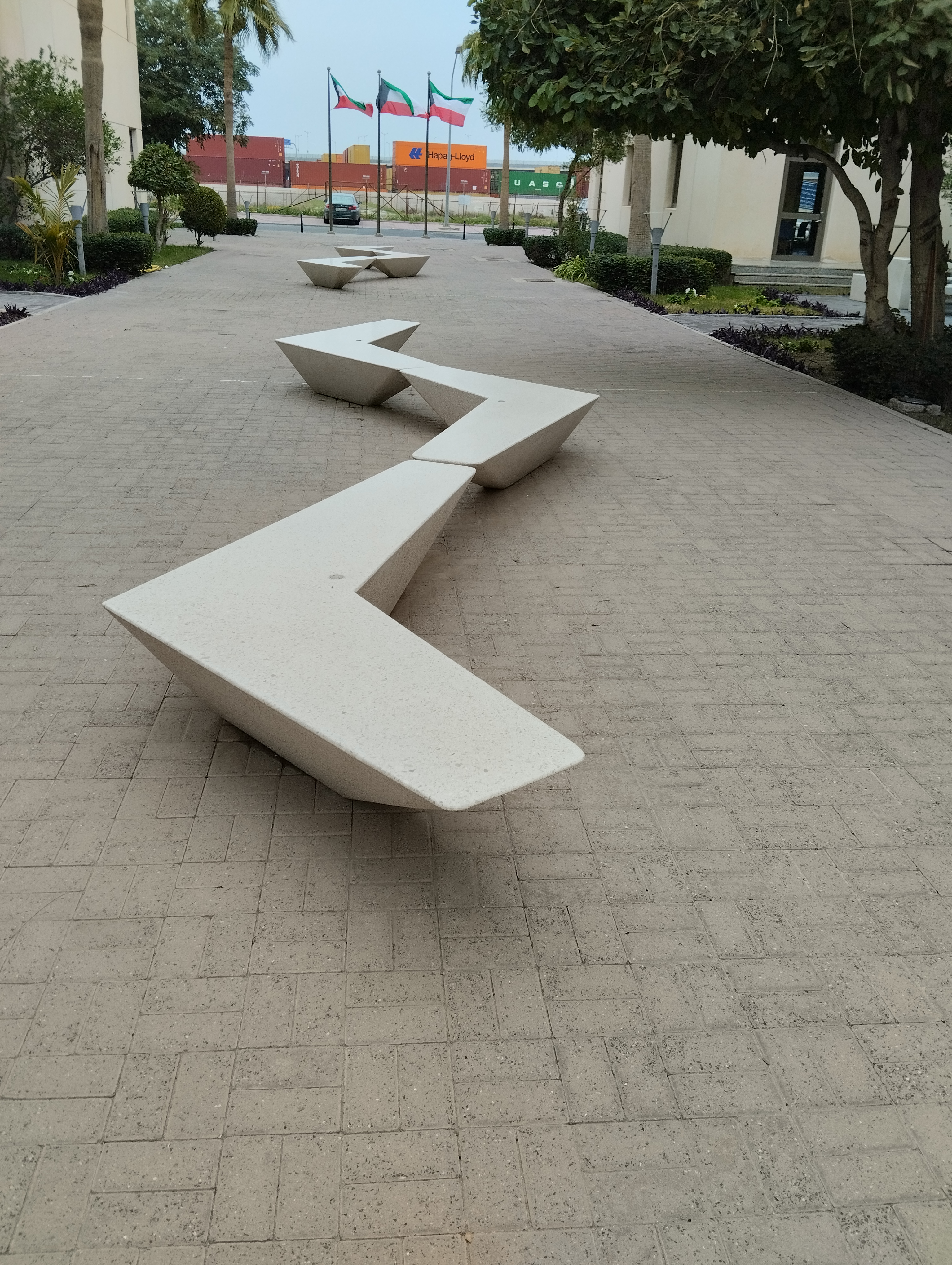 The Arrow bench is a contemporary unit with cantilevered ends that can be used to create seating zones.